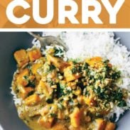 Creamy Thai Sweet Potato Curry in a bowl with rice.